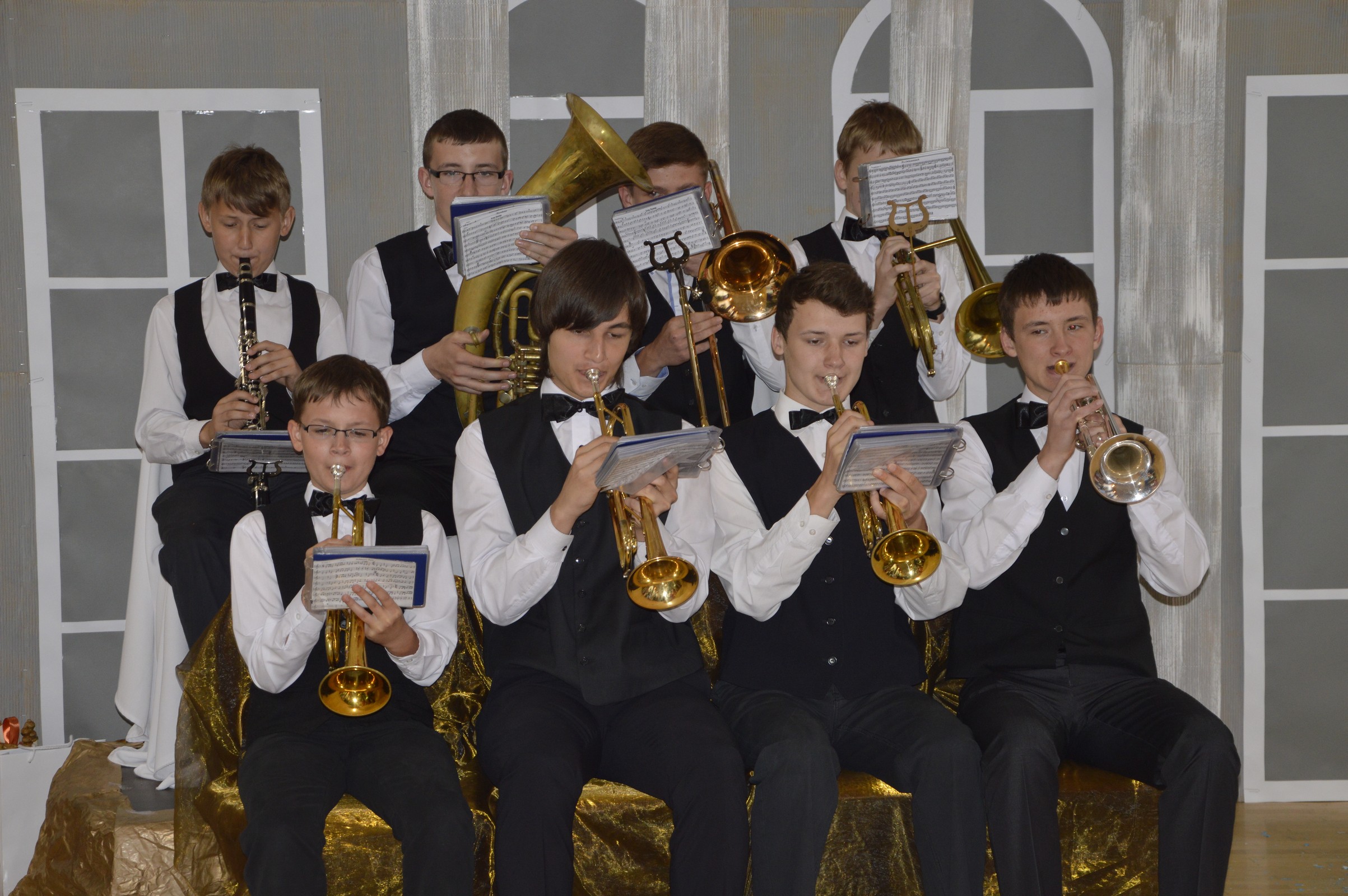 wszystkich gości. Na środku sceny znajdowała się orkiestra dęta