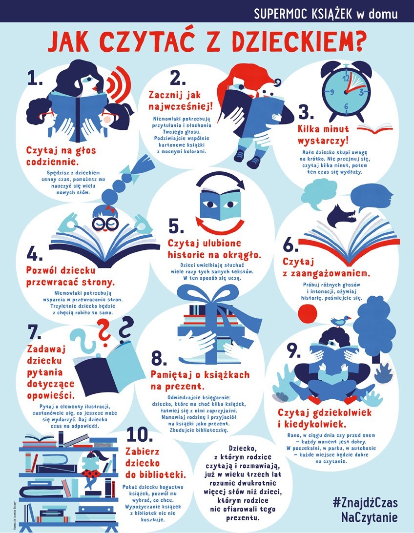Rusza akcja Supermoc książek w domu! Z dziećmi należy czytać od pierwszego roku ich życia – to prawda powszechnie znana. Ale czy wiemy, jak się za to zabrać? Akcja „Supermoc książek w domu” w prosty i czytelny sposób odpowiada na to pytanie. Czytaj więcej: Rusza akcja Supermoc...