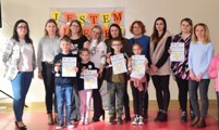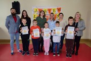 Podczas spotkania na sali gimnastycznej wyróżniającym się uczniom z klas 1-3 zostały wręczone puchary, dyplomy i plakietki.