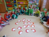 Czerwone i zielone stroje zerówkowiczów, opaski na głowach z jabłkiem to nieomylny znak, że w klasach 0 obchodziliśmy 22 listopada Dzień Jabłka.