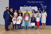 W poniedziałek, 4 kwietnia 2022 roku już po raz kolejny uczniowie, nauczyciele i Dyrekcja szkoły spotkali się na uroczystym przyznaniu tytułu „Jestem Liderem”.