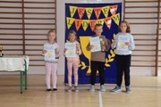 Podczas spotkania na sali gimnastycznej wyróżniającym się uczniom z klas 1-3 zostały wręczone puchary, dyplomy i plakietki.