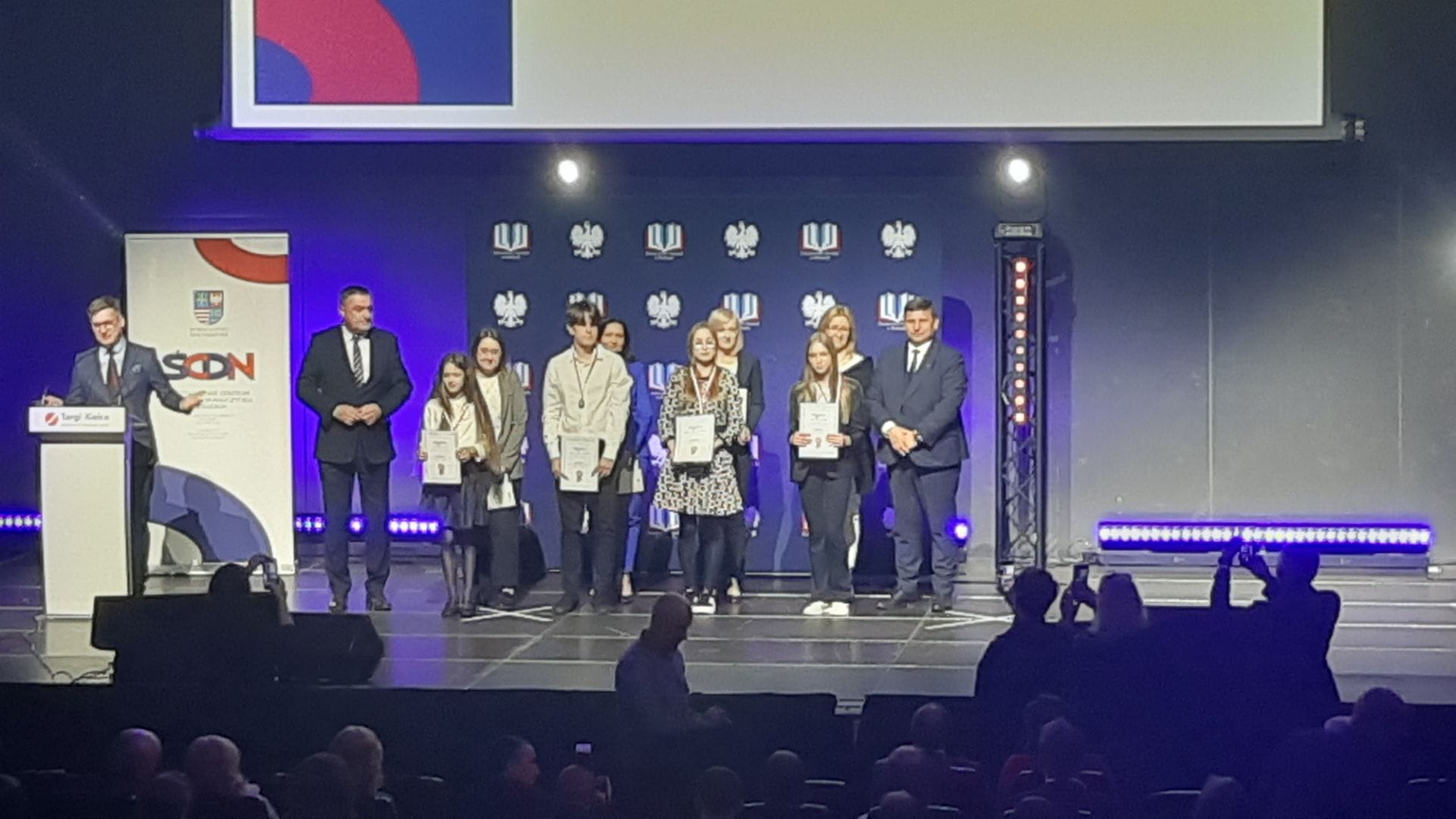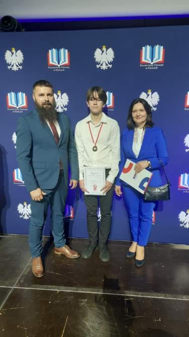 28 kwietnia 2025 r., w sali konferencyjnej OMEGA w Centrum Kongresowym Targów Kielce, odbyło się uroczyste podsumowanie Wojewódzkich Konkursów Przedmiotowych 2024/2025 dla uczniów szkół podstawowych województwa świętokrzyskiego. W gronie 144 laureatów był również uczeń naszej szkoły – Marcel Tkaczyk, laureat VII Wojewódzkiego Konkursu z Języka Niemieckiego. Marcel odebrał dyplom oraz medal z rąk Świętokrzyskiego Kuratora Oświaty Piotra Łojka oraz Wicewojewody Świętokrzyskiego Michała Skotnickiego.
