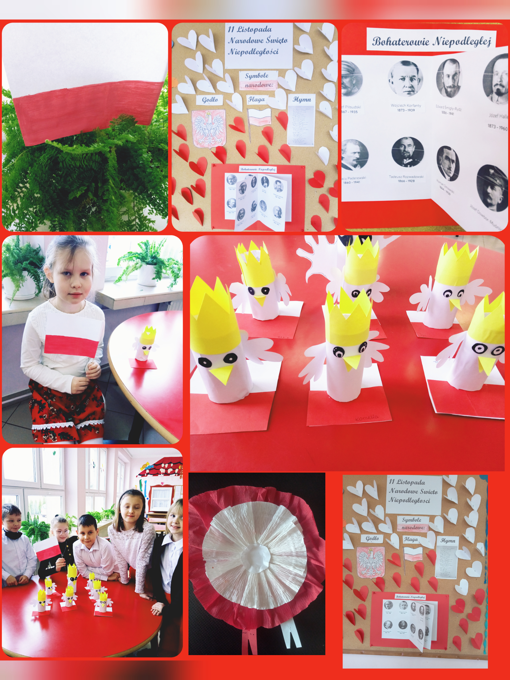 Dzień 11 listopada 1918 roku jest przełomowym momentem w dziejach historii Polski. Jest to ważna data dla każdego Polaka, będąca symbolem miłości do Ojczyzny, walki o wolność, wiarę w zwycięstwo. Poprzez różne formy zajęć, dzieci zapoznały się z symbolami narodowymi: flagą, godłem, hymnem oraz z sylwetkami ważnych postaci historycznych. Powstały piękne orły, flagi i gazetka tematyczna. Oprócz prac plastycznych upamiętniających Nasze Święto, królowały pieśni patriotyczne.