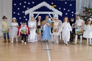 Uczestnicy wystąpili w pięknych strojach, przypominających tradycje jasełkowe, co zostało docenione przez organizatorów. Wszyscy, którzy przybyli w przebraniu, otrzymali upominki. Konkurs uświetniła występem na skrzypcach uczennica klasy VI b Weronika Wieczorek. Serdeczne podziękowania kierujemy do sponsorów nagród: