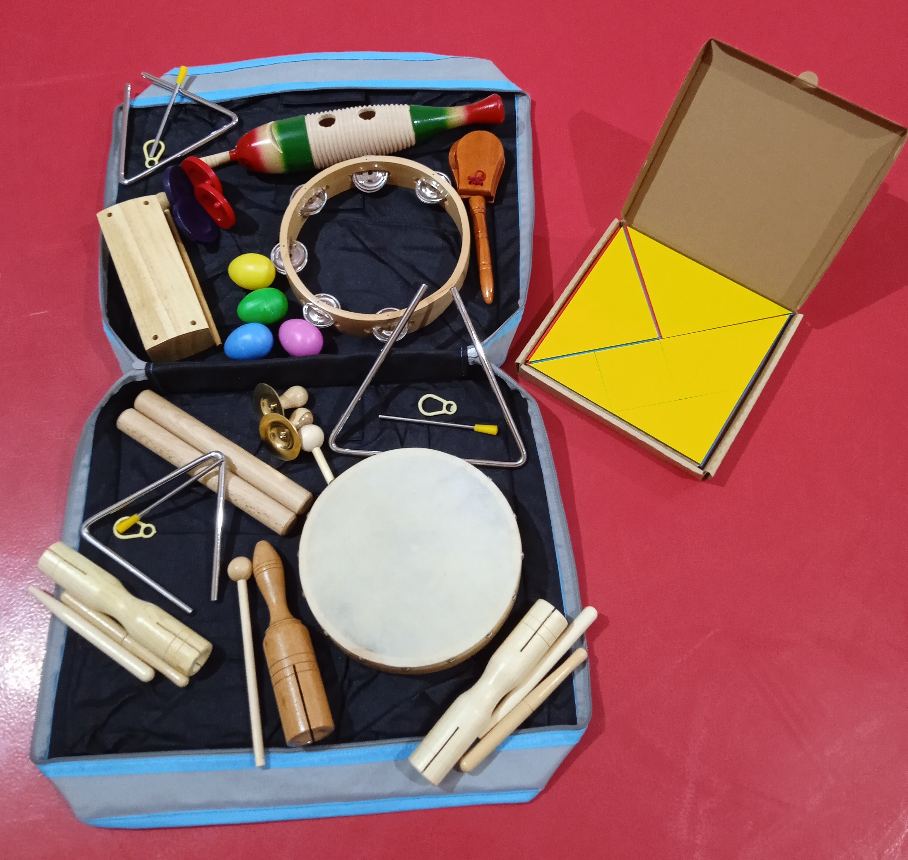 Za zebrane talenciaki zakupiliśmy: zestaw matematyczny Tangram oraz torbę z muzycznymi sprzętami.